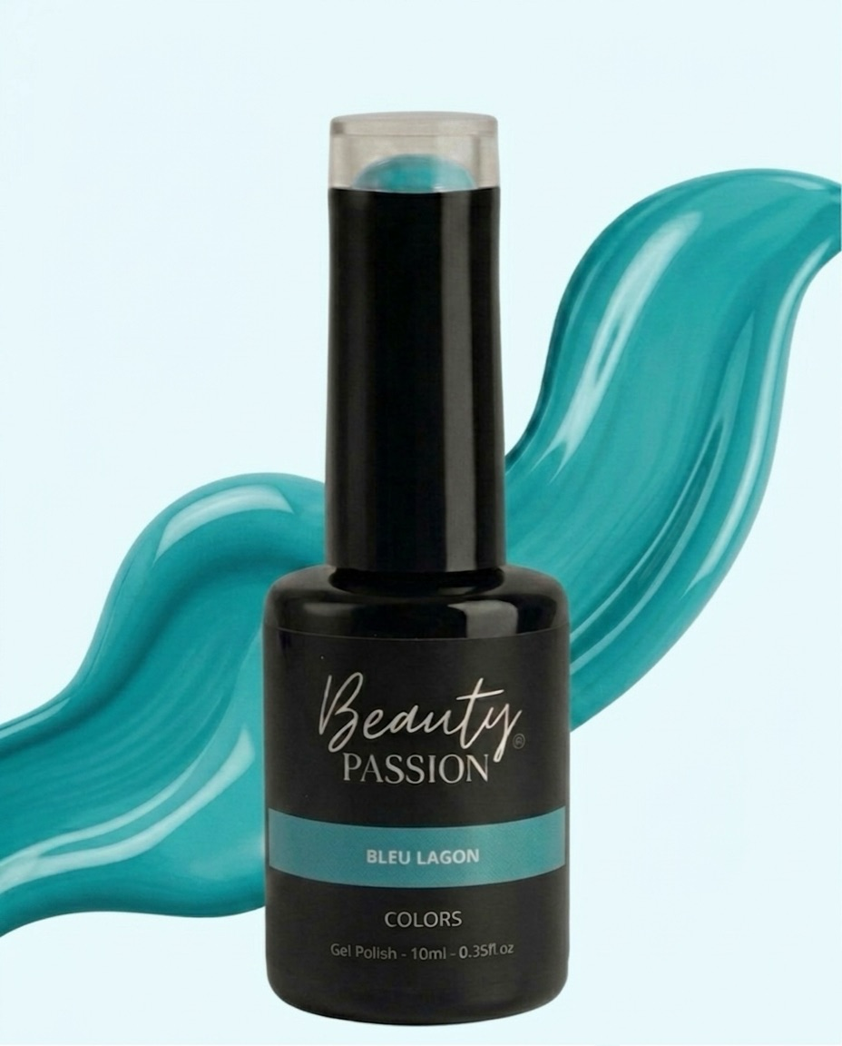 "Bleu Lagon" de Beauty Passion est un vernis semi-permanent bleu turquoise clair, lumineux et rafraîchissant, pour un look doux et pétillant.