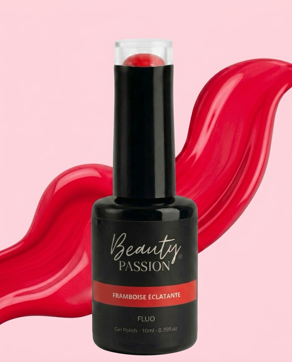 Framboise Éclatante de Beauty Passion est un vernis semi-permanent rose framboise vif au fini fluo. Une teinte audacieuse et lumineuse, parfaite pour un look estival et vibrant.