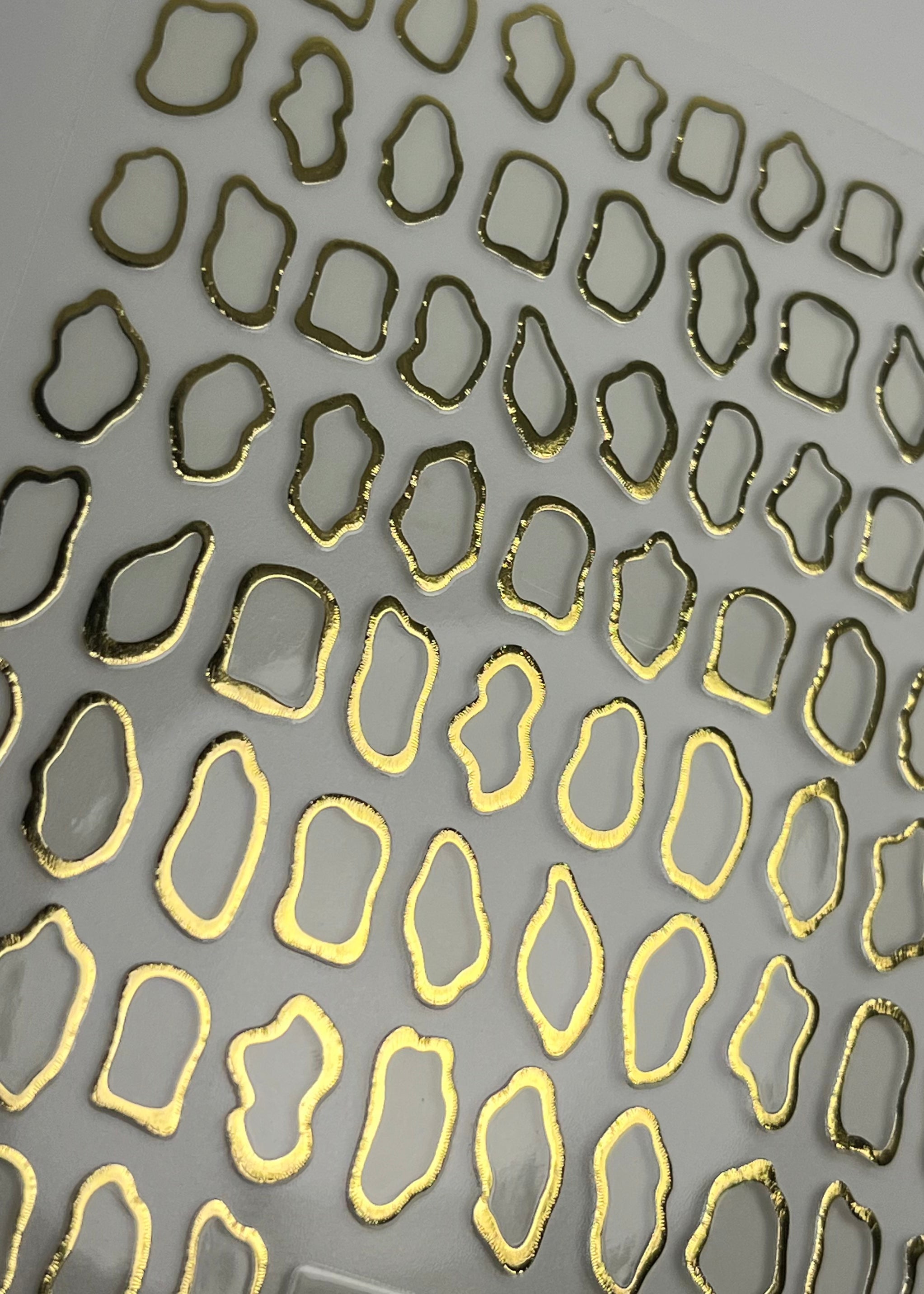 Recréez facilement la tendance du cercle chromé doré avec ces stickers ultra-fins ! ls ajoutent une touche chic et lumineuse à vos poses sur vernis semi-permanent, gel ou acrygel.