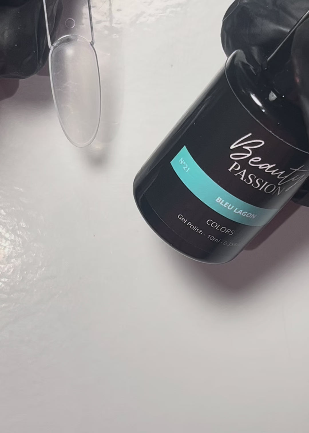 "Bleu Lagon" de Beauty Passion est un vernis semi-permanent bleu turquoise clair, lumineux et rafraîchissant, pour un look doux et pétillant.