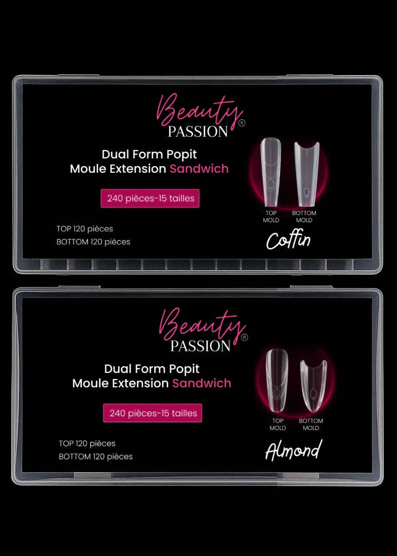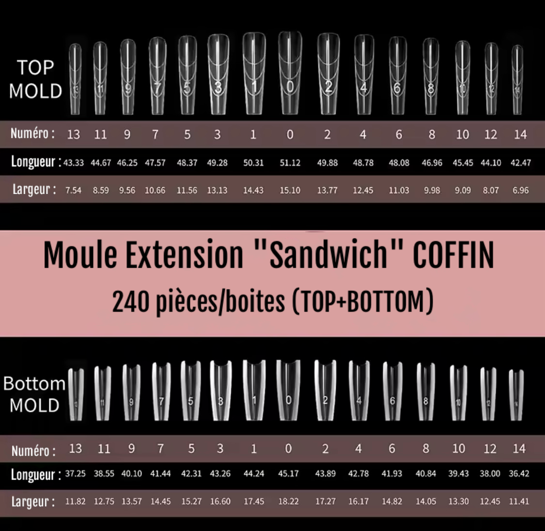 Les Moules Sandwich réutilisables, aussi appelés Double Popits ou Dual Form Top & Bottom, représentent une nouvelle technique révolutionnaire pour le rallongement des ongles en gel ou acrygel.