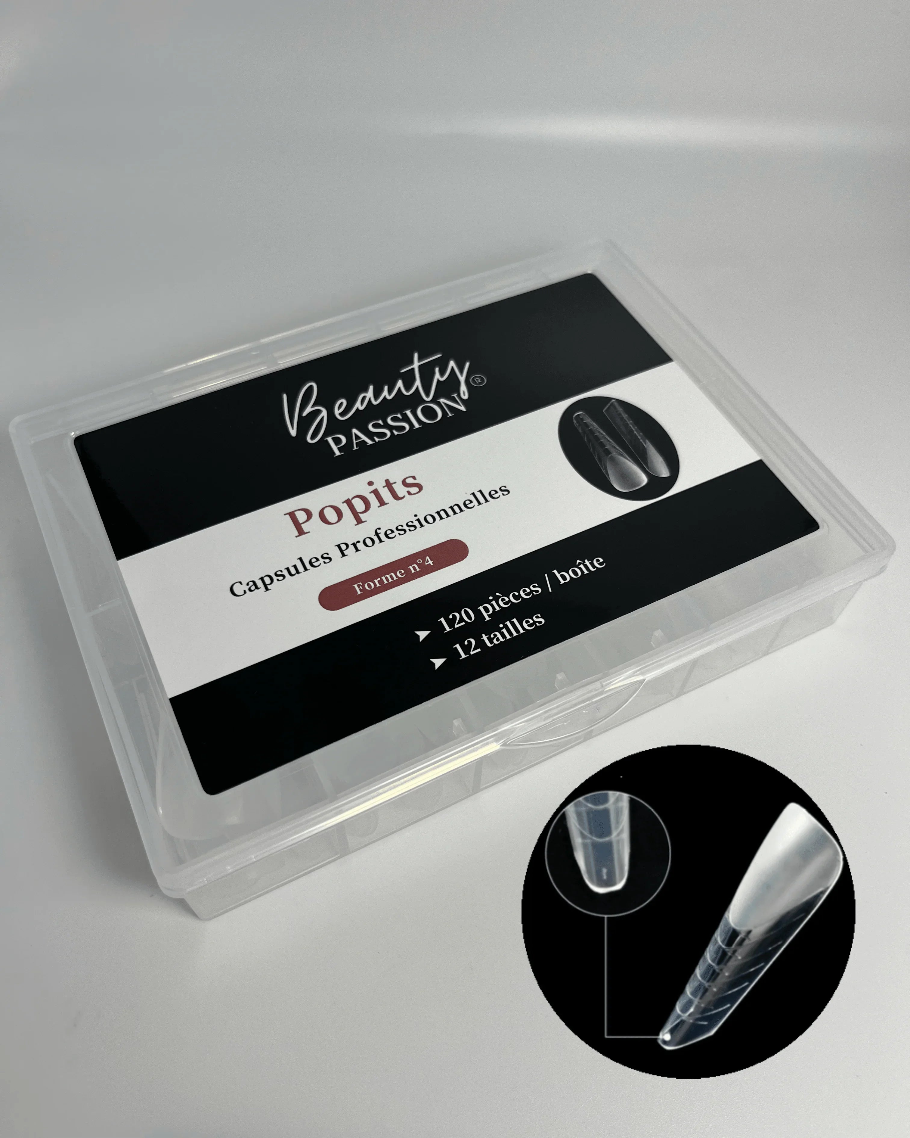 Découvrez nos POPITS Capsules Professionnelles (aussi appelé Dual Form) pour une réalisation simplifiée de vos extensions d'ongles. Chaque boîte est composée de 120 capsules de 12 tailles différentes pour une parfaite adaptation. S'utilise avec nos Acrygel.