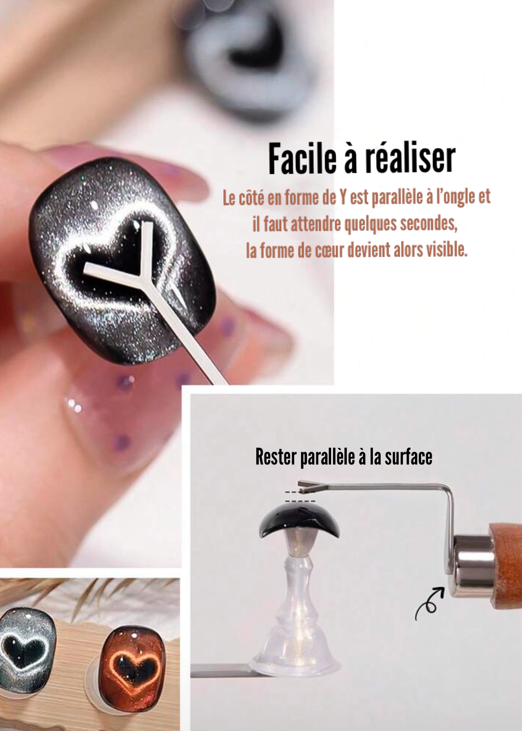 Sublimez vos manucures avec l’Aimant 4-en-1 Cat Eye, un outil indispensable pour créer des effets lumineux, des dégradés et des motifs originaux sur vos vernis magnétiques.